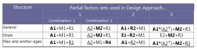 The table 3.1. below shows which of partial factor are used in each design approch, depending on the type of structure being designed.